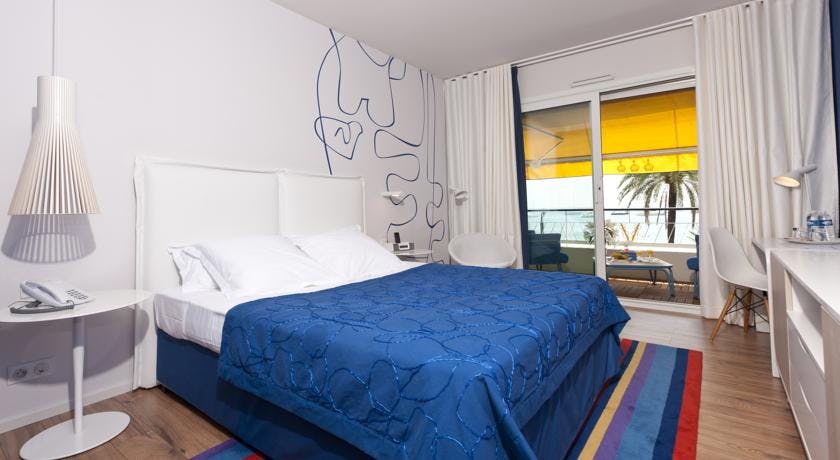 Profitez d'une vue superbe de la Mediterrannée du balcon de nos chambres Vue Mer. Idéal pour un petit déjeuner matinal, se relaxer en sirotant un verre, faire une petite sieste ou un peu de lecture, nos balcons de 6m² sont fournis de deux fauteuils confortables et d'une grande table basse. Les grandes baies vitrées ont une isolation sonore de qualité - une fois fermées, le bruit de la rue est réduit au minimum.