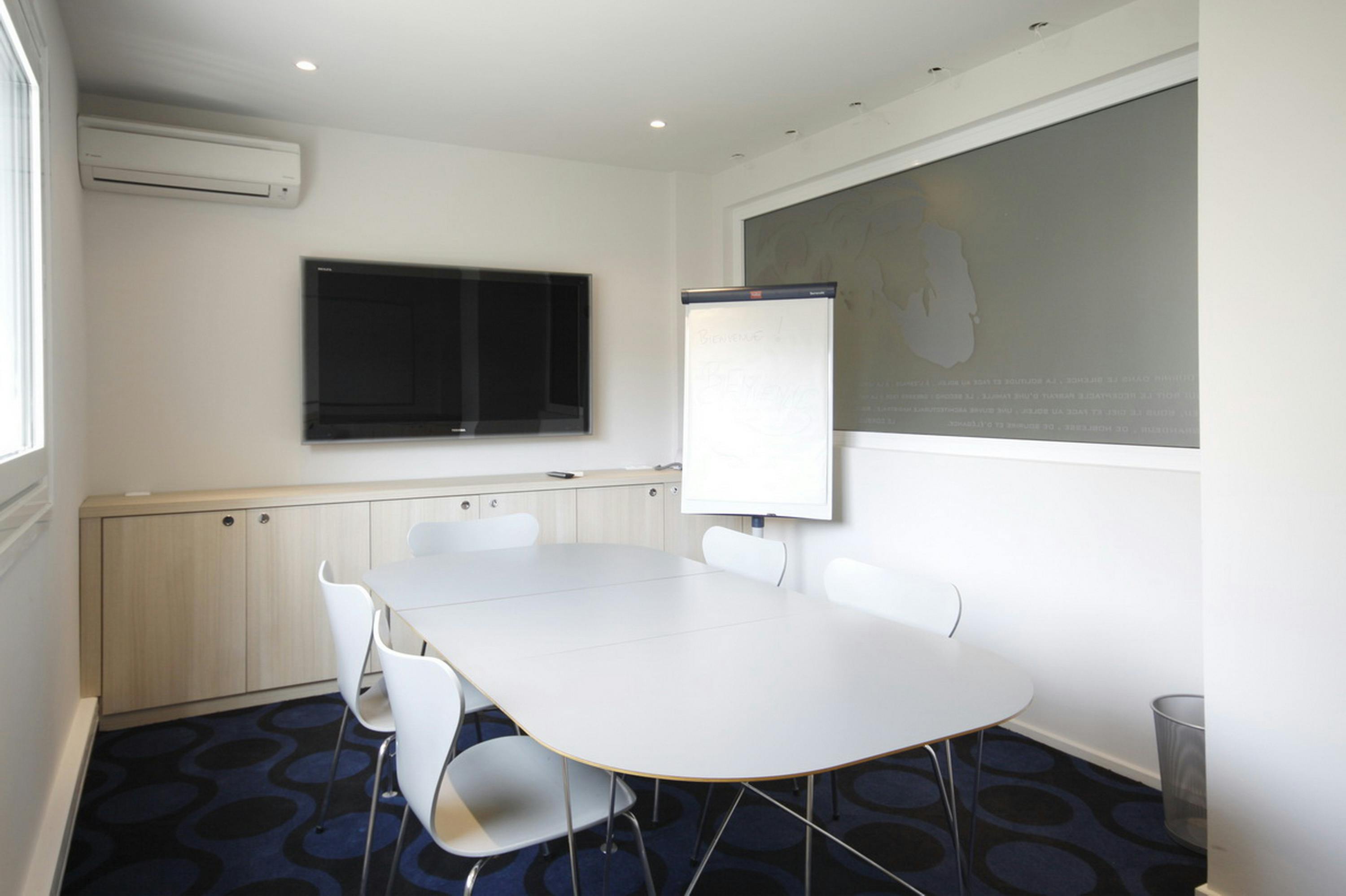 Our meeting room is secure and air conditioned. It is equipped with an Internet connection, photocopier, computer, a 55" screen, as well as a whiteboard and paperboard. It is suitable for a maximum of 8 people around a large table.